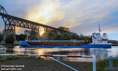 It’s carrying capacity is 3158 t DWT and her current draught is reported to be 5.5 meters. Her length overall (LOA) is 82.51 meters and her width is 12.4 meters.